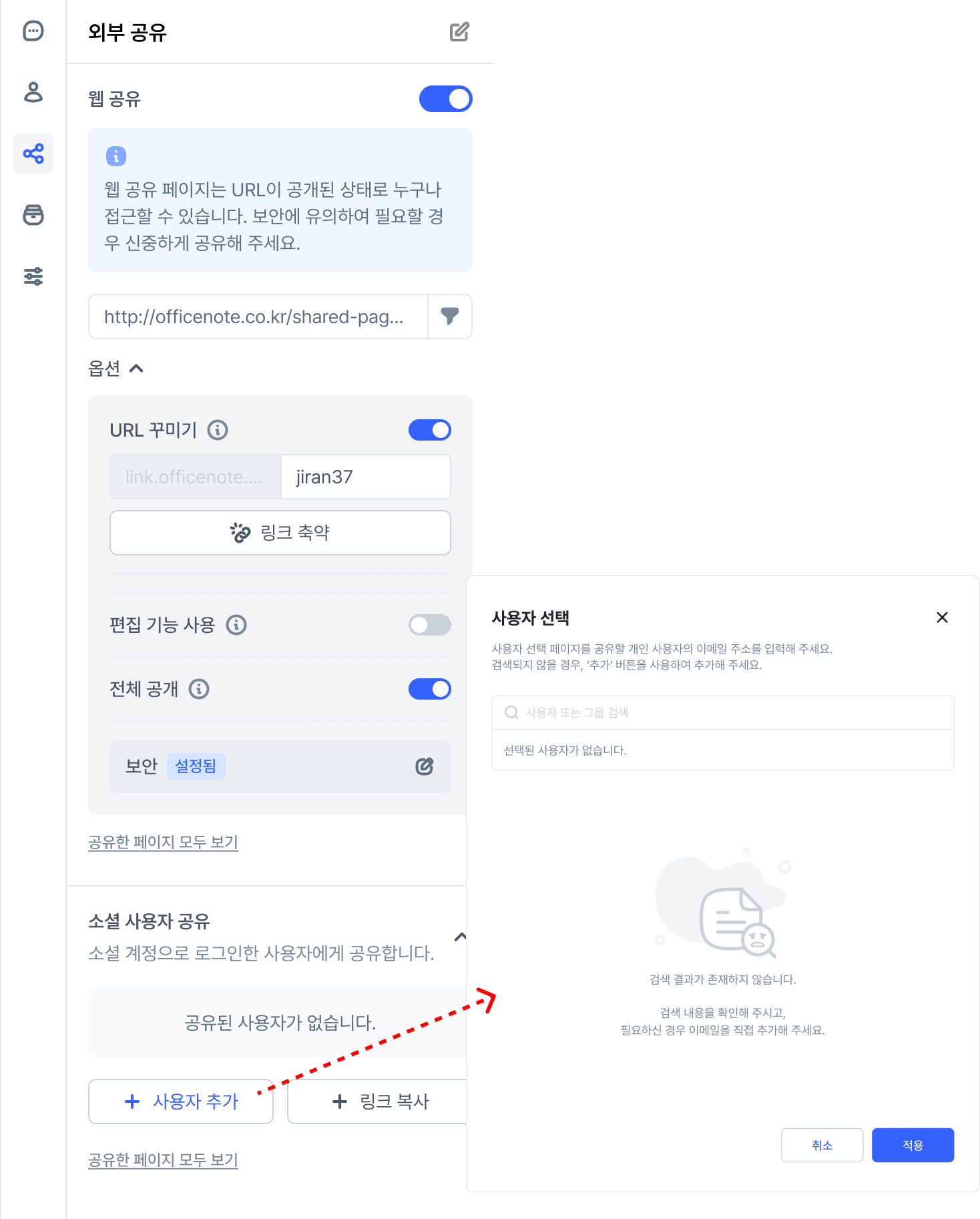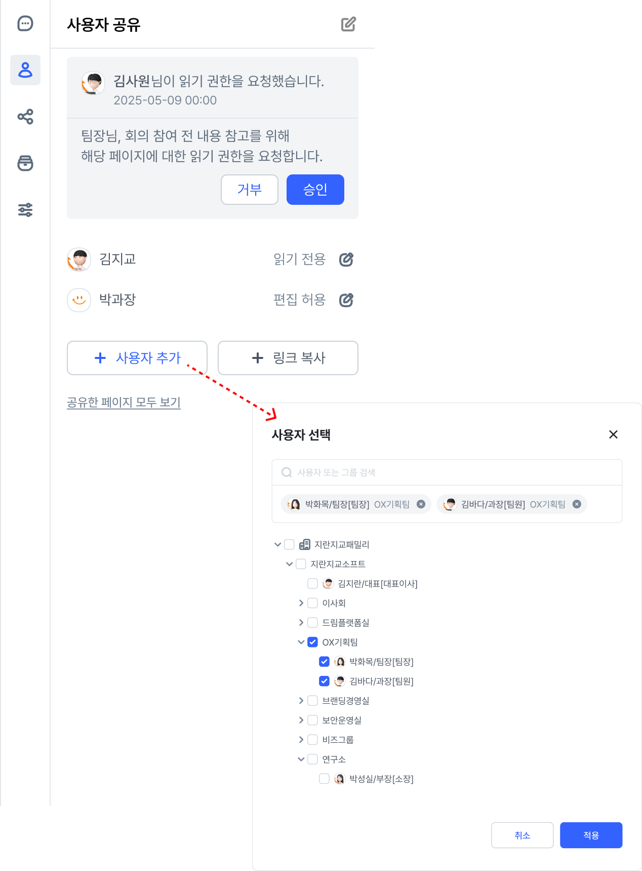 같은 조직도 내 사용자에게 페이지를 공유하는 기능이에요.