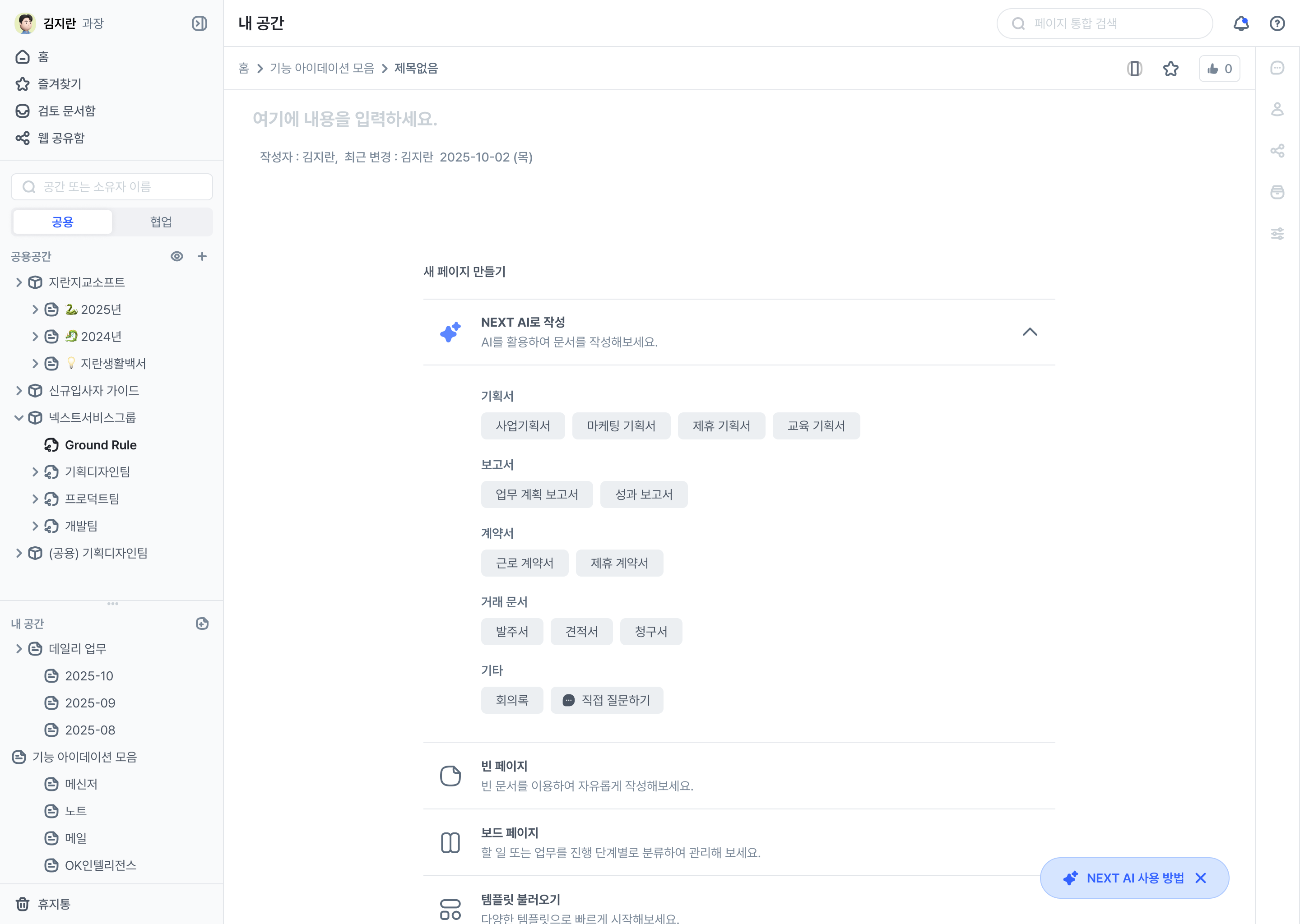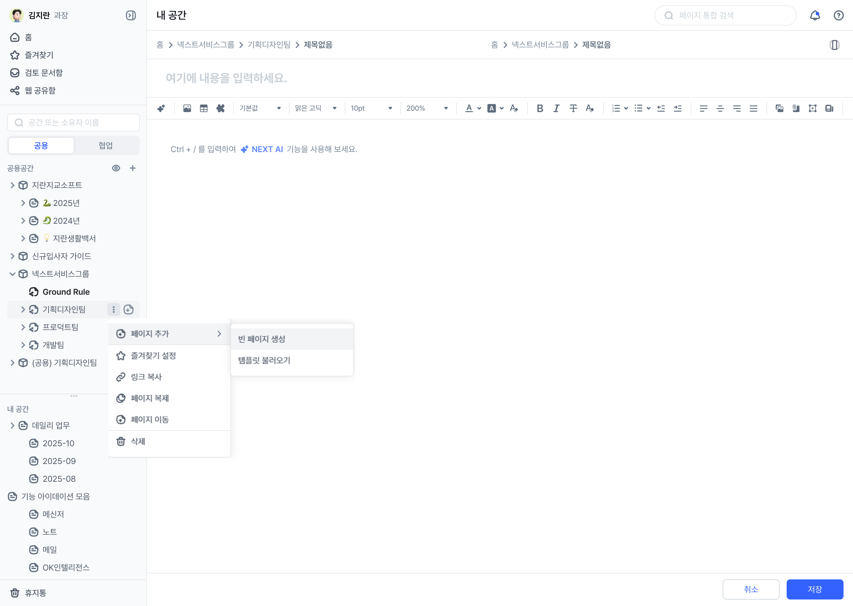 자신의 작업 스타일에 맞게 페이지를 생성하면 반복적인 문서 작업을 효율적으로 처리할 수 있어요.