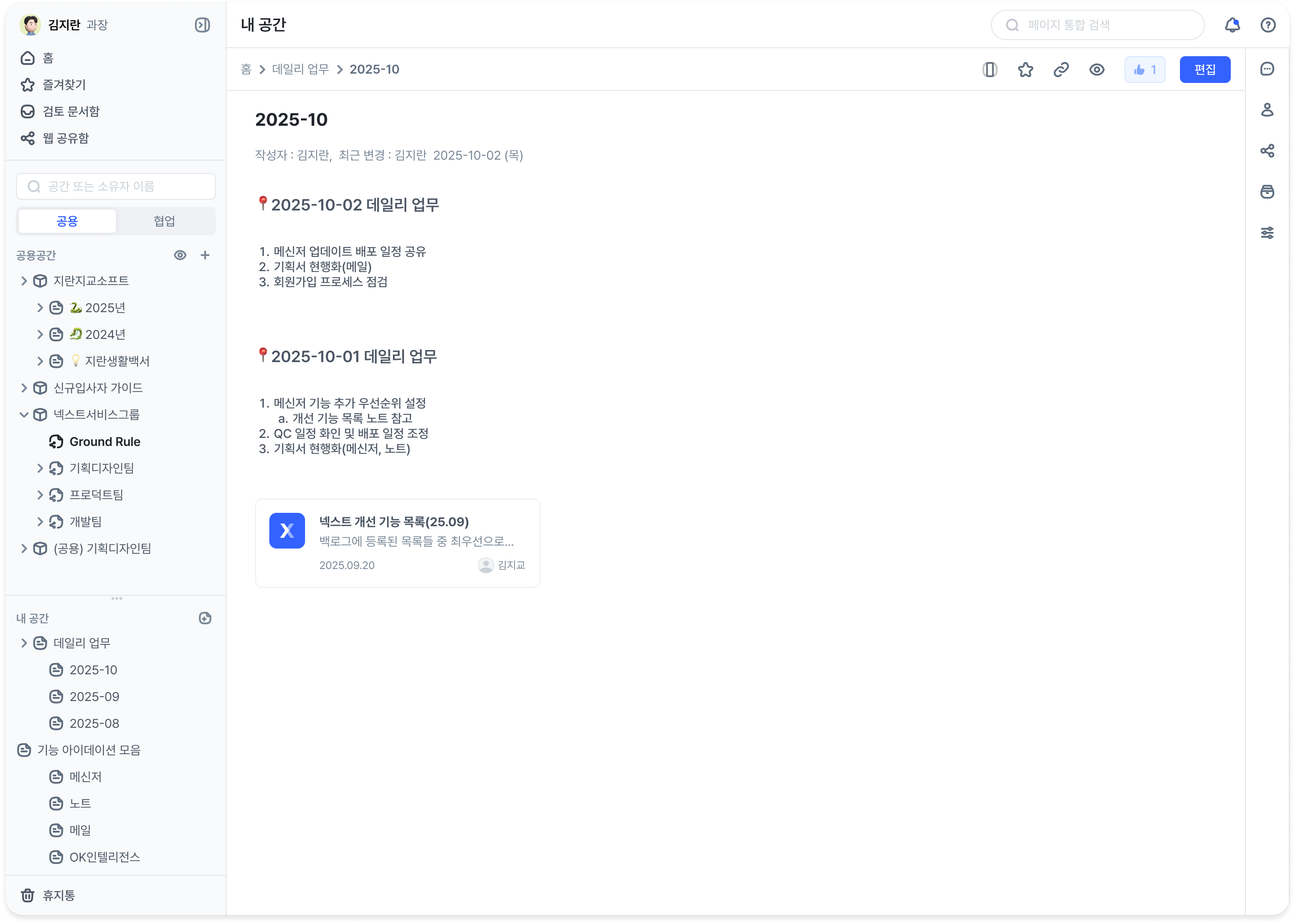 함께 문서 쓰고 공유함으로써 지식이 모이고 협업도 훨씬 쉬워져요.
