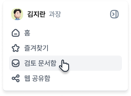 검토 문서함에서는 내가 받은 검토 요청과 보낸 검토 요청을 모아볼 수 있어요.
