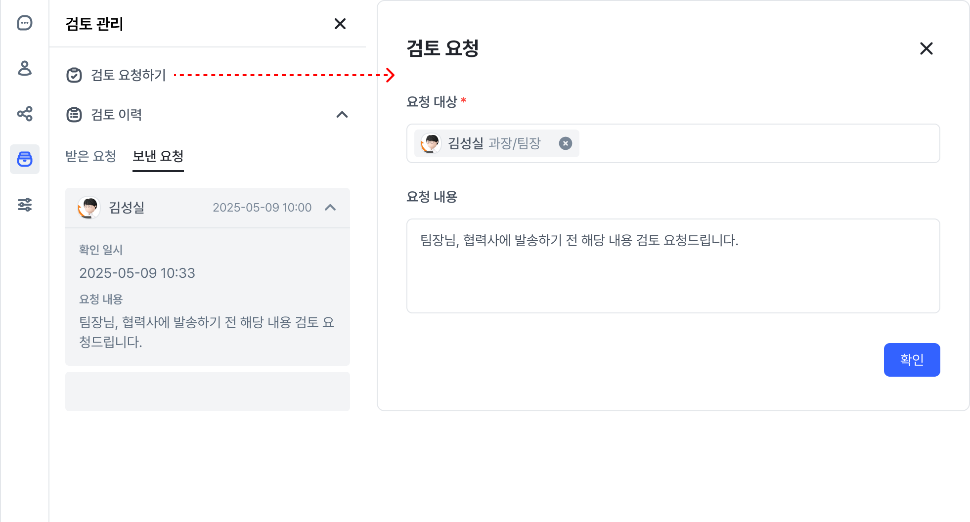 내가 검토를 요청한 문서는 '보낸 요청'에서 확인할 수 있고, 받은 요청은 '받은 요청'에 기록되니 관리도 간편하답니다.