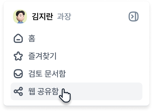 웹 공유는 공유 URL을 통해 원하는 사람들과 자유롭게 공유할 수 있는 기능이에요. 외부 중요 고객, 파트너, 대행사도 모두 문서에 접근할 수 있어요!