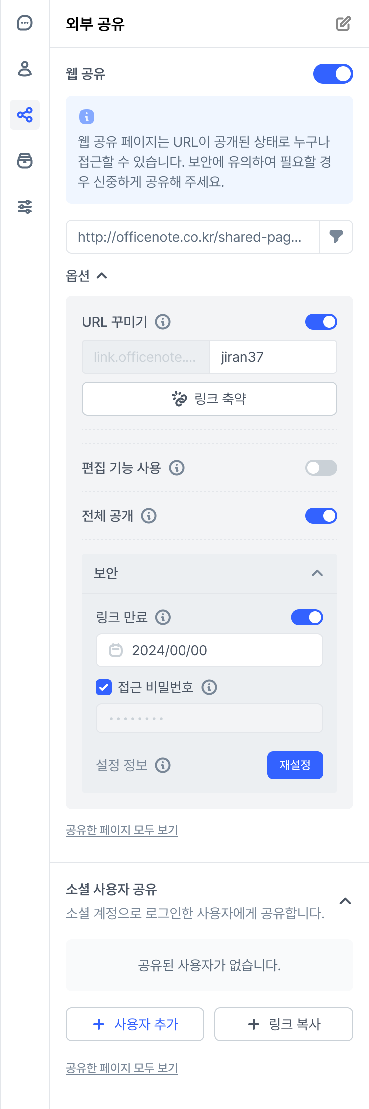 - 전체 공개 : 해당 링크를 구성원 사용자들에게 전체 공개하는 기능이에요.