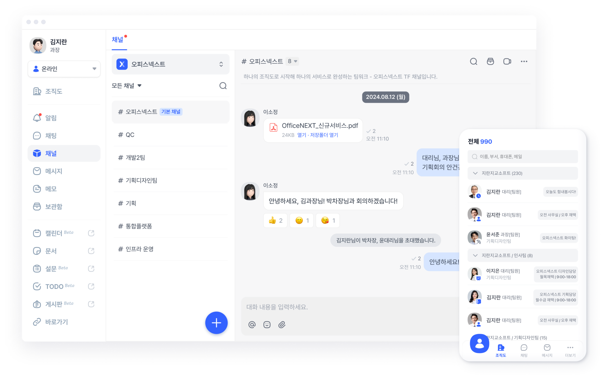 특정 프로젝트나 팀을 중심으로 소통하는 ‘채널’은