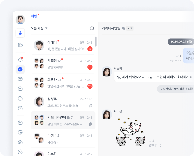 일대일부터 단체방까지, 빠르고 개인화된 소통이 가능합니다.
