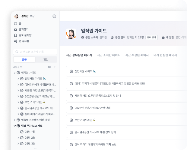 회사 및 부서 내 중요 문서는 [공용] 공간에서 관리하고,